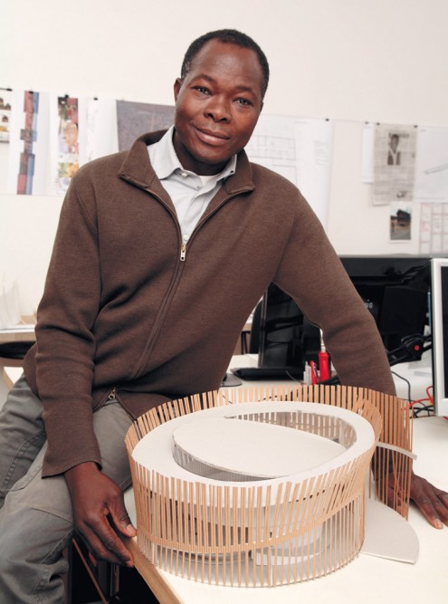 Diébédo Francis Kéré hat als Form ein schneckenförmiges Gebäude entworfen, das mit der Zeit wachsen kann und sich gleichzeitig an die klimatischen Bedingungen anpasst. Denn wie bei seinen anderen Bauten in Burkina soll auch das Operndorf ohne Klimaanlage gebaut und natürlich belüftet und gekühlt werden. Sein Entwurf kombiniert deshalb traditionelle Lehmbauweise mit modernem, innovativem Stahlbau, ist nachhaltig und vor Ort umsetzbar. Schließlich sollen die Leute am Bauprozess des kreisförmigen Dorfes und des Zentralbaus beteiligt werden – anders als in Europa ist die soziale Komponente in Afrika ein grundsätzlicher Bestandteil eines jeden Bauvorhabens, aber auch einer nachhaltigen Entwicklungshilfe.
