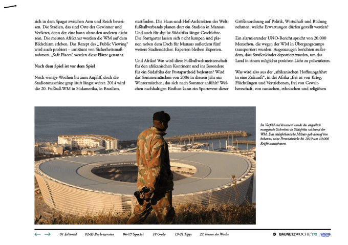 Der Countdown läuft! In weniger als einem Monat beginnt die Endrunde der Fußball-Weltmeisterschaft. Wer nicht wie Kuranyi und Frings zu Hause bleiben muss, kann sich auf Sonne, Steppe und neue Stadienbauten in Südafrika freuen. Ein afrikanisches Wintermärchen, das sich nach Sommer anfühlen wird. Mehr