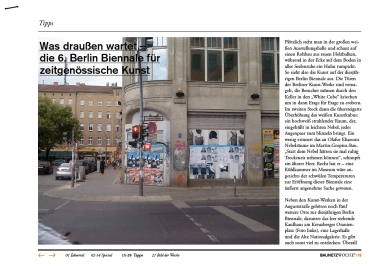 6. Berlin Biennale: noch bis 8. August,