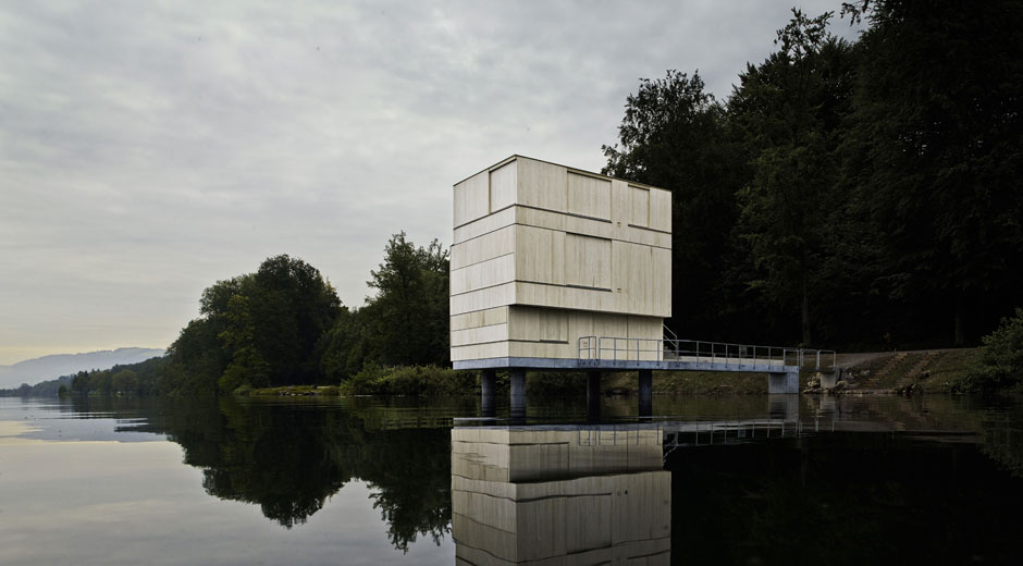 Wer wohnt denn hier? Seit diesem Sommer steht am Rotsee im Schweizer Kanton Luzern ein heller Holzkubus im Wasser – kein Wochenendhaus, sondern der neue Zielturm einer berühmten Regattastrecke: Seit 1903 wird am Rotsee international um die Wette gerudert. Die Zürcher Architekten Fuhrimann Hächler haben für die sommerlichen Wettkämpfe eine markante Skulptur in die Seenlandschaft gesetzt. Drei Wochen im Jahr wird hier entschieden, wer als Erstes im Ziel ist.