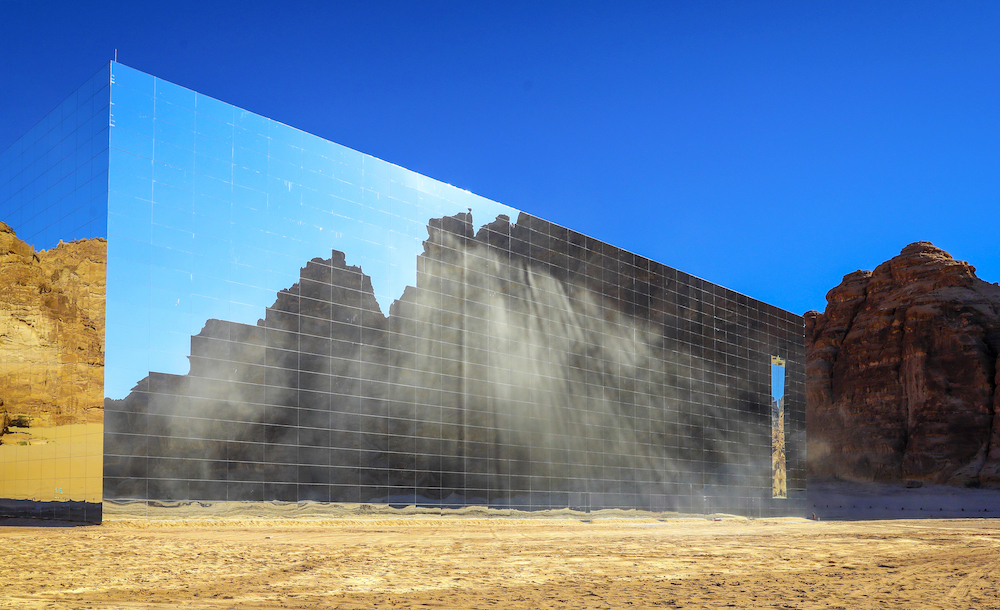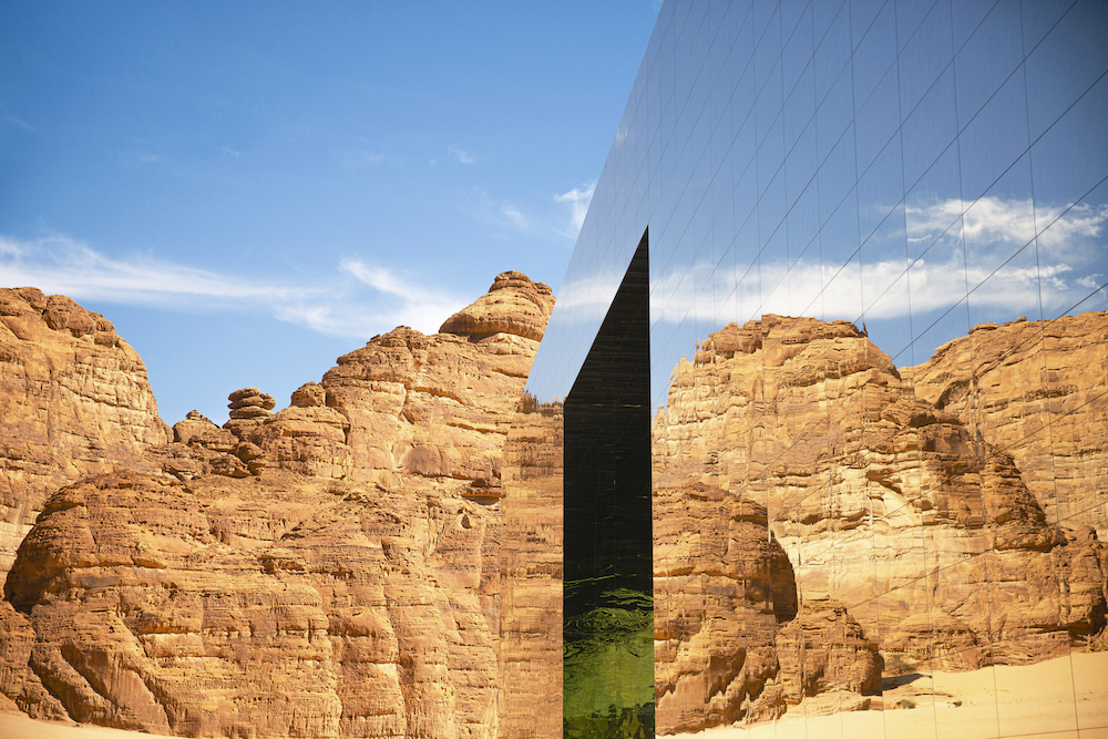 Die Wüste als Kontext fasziniert viele Architekten und Künstler, der Spiegel als Medium ebenso. Florian Boje, Gründungspartner von Giò Forma Architects Designers & Artists, erklärt das Konzept für die Konzerthalle Maraya als „Versuch, eine Nicht-Architektur zu bauen“: Es sollte kein eigenes Statement, sondern in erste Linie Harmonie zwischen Gebäude und Landschaft entstehen. Auch wenn die Wüste in Saudi-Arabien dazu einlade, eine Skulptur zu entwerfen, müsse man als Architekt diesem Drang widerstehen, um den Charakter der Landschaft zu erhalten, meint Boje. Baukunst wird zur Negation der Negation: eine doppelte Verneinung.